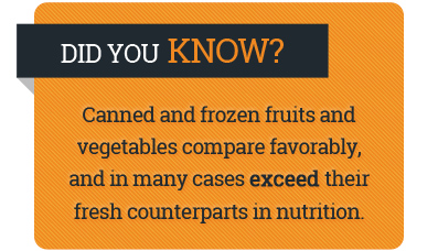 Canning processes are designed to lock in nutrients from produce at their peak ripeness so, unlike fresh produce, the foods lose very little nutritional value over time. Our thermal processes attempt to minimize nutrient loss during cooking or freezing, and many of our products can be steamed in the bag to minimize further nutrient loss.